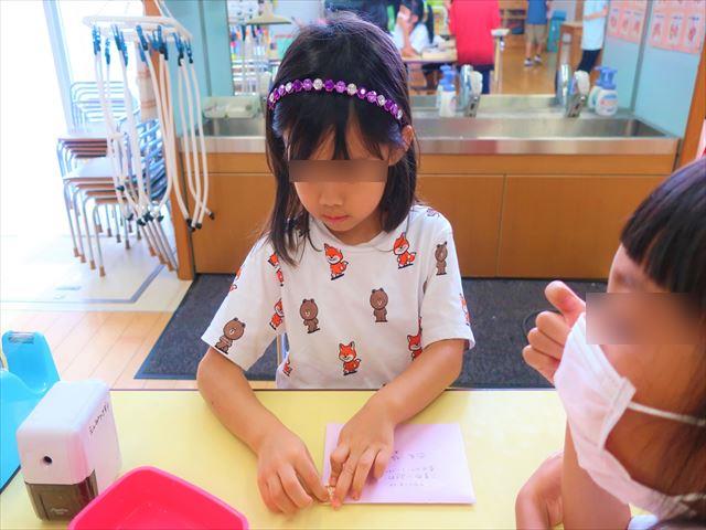 実際に自分達で敬老の手紙に切手を貼ってもらう予定だったので、その場で切手を配り