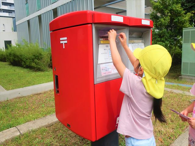 投函する様子も一人ひとりがポストに入れる姿を自然とみんなで見守っていました。