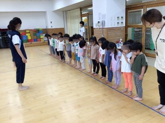 ぐんぐんさん(4歳児)になって体操教室が始まりました。赤羽台保育園ではセントラルスポーツさんが来て下さり、体操指導を受けています。