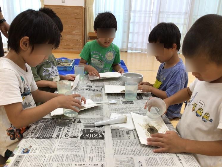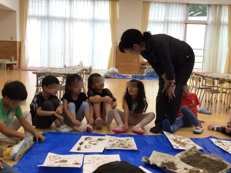 今回は日常の保育では今まで取り入れることのなかった「土から絵の具を作る」という本当に貴重な経験をすることが出来ました。みんなが乳鉢で細かくしてくれた沢山の土は、園でまた絵の具を作って遊びたいと思います。