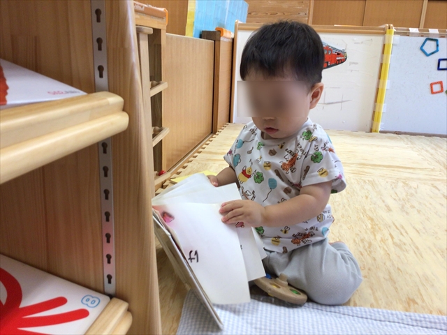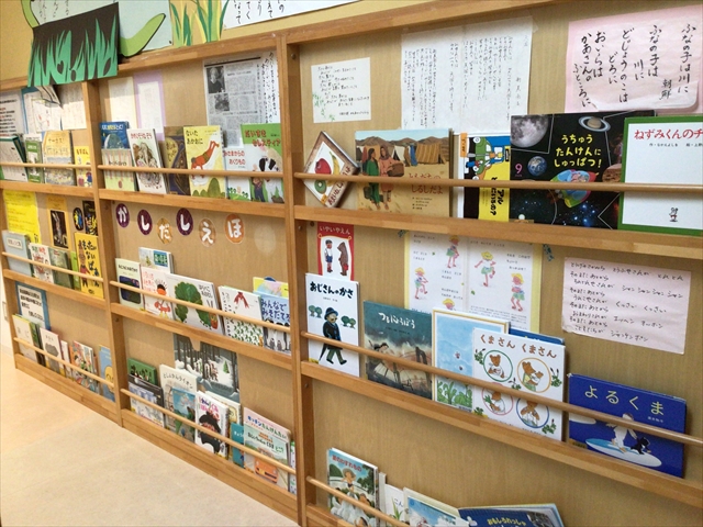 保育園には、各クラス、おうちに本棚があって、子どもたちが自由に手に取り絵本を楽しんでいます。