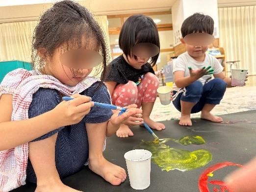 絵の具で遊ぶ事が大好きな子ども達は朝からウキウキしていましたよ。