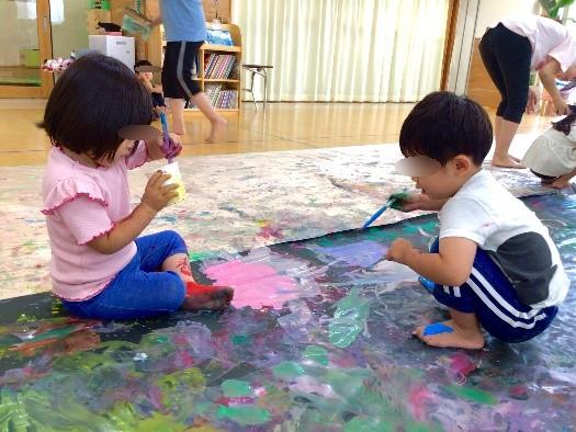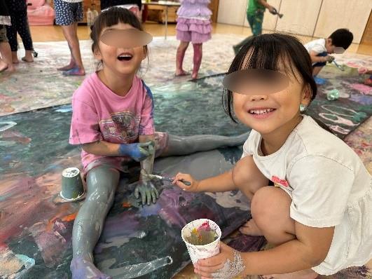 気付いたら子ども達の体には絵の具が沢山塗られていました。