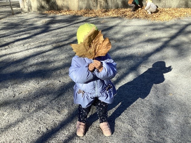 季節が移り替わり、落ち葉がたくさんある時期へ。落ち葉ひとつでも子ども達の手にかかれば、いろんな遊びが広がります!