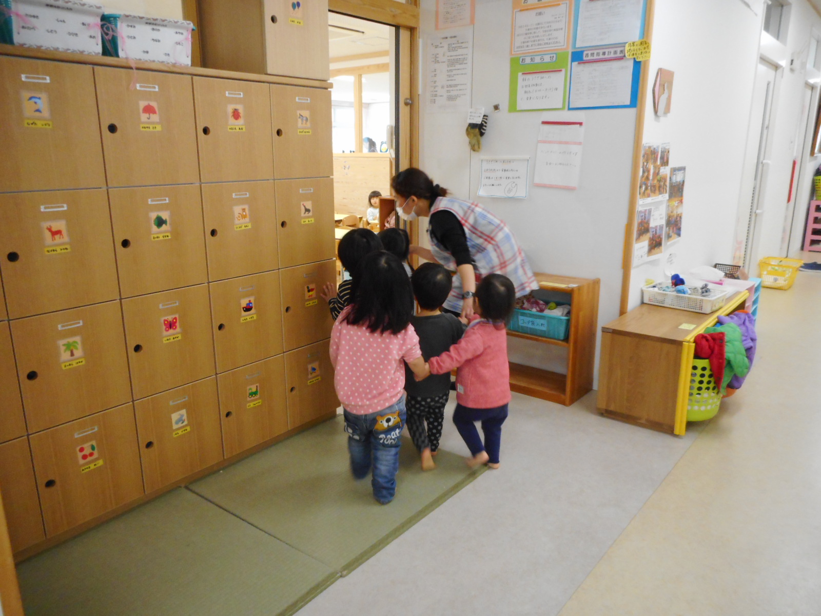 ひよこ組(0歳児)の部屋を覗いています。